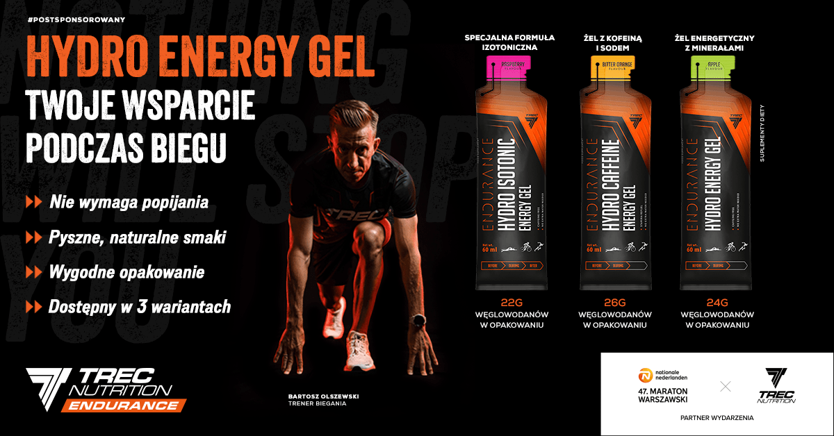 Podczas 47. Nationale-Nederlanden Maratonu Warszawskiego znajdziesz nasze żele w pakietach startowych, aby każdy zawodnik mógł bez problemu zadbać o uzupełnienie węglowodanów w trakcie biegu. Bo maraton to nie tylko dystans, który pokonujesz. To także energia, którą zabierasz ze sobą.