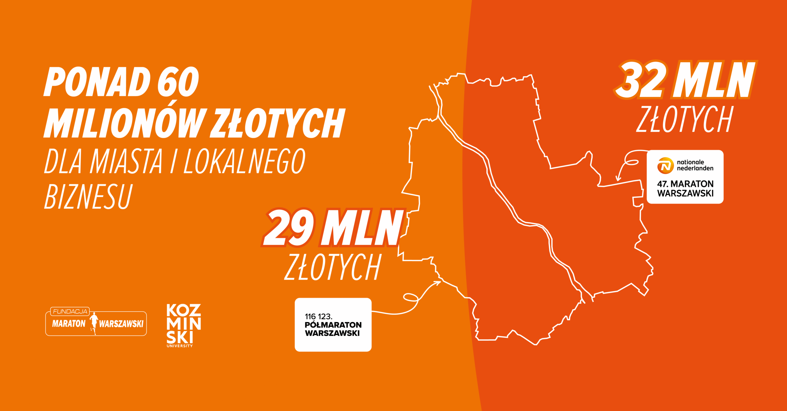 Z opublikowanego właśnie raportu Akademii Leona Koźmińskiego i Fundacji „Maraton Warszawski” wynika, że łączny efekt ekonomiczny Maratonu i Półmaratonu Warszawskiego dla stolicy to ponad 60 milionów złotych rocznie – dzięki biegaczom i kibicom, nie licząc bezcennych efektów promocyjnych i społecznych.