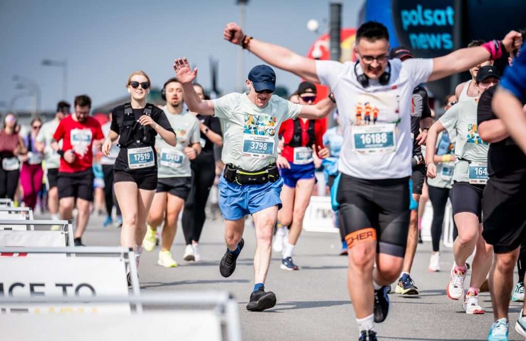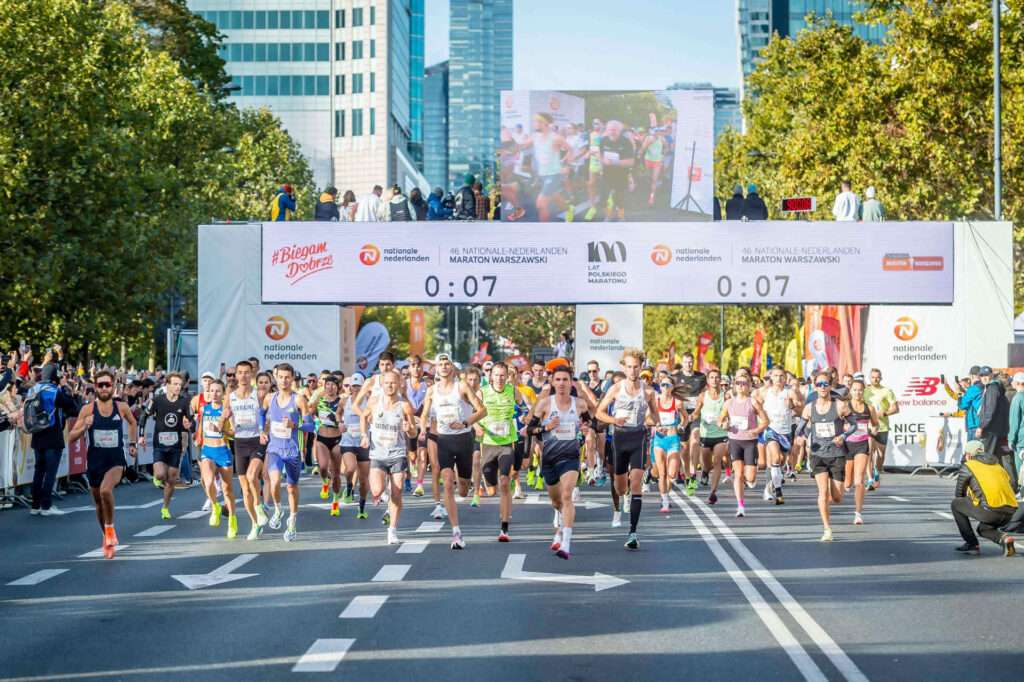 Usłyszysz wystrzał startera, który oficjalnie rozpoczyna bieg. Pamiętaj, że w większych maratonach, w tym w Warszawie, nie zaczynasz biec od razu po pierwszym strzale (chyba, że stoisz w pierwszej strefie). Ze względu na dużą liczbę uczestników, wybiegnięcie ludzi z poszczególnych stref startowych na trasę trwa zazwyczaj kilka do kilkunastu minut. Bądź cierpliwy, unikaj przepychania się. Twój czas jest mierzony od momentu przekroczenia linii startu – netto (dzięki chipowi), więc nie tracisz nic, czekając spokojnie.